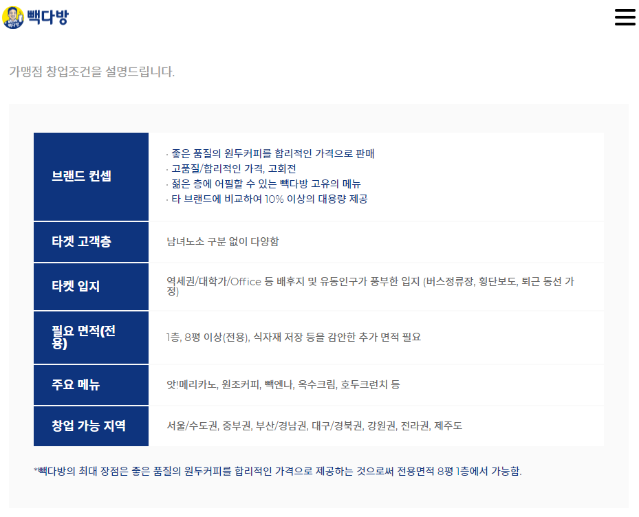 그밖의 빽다방 창업, 오픈에 필요한 정보들