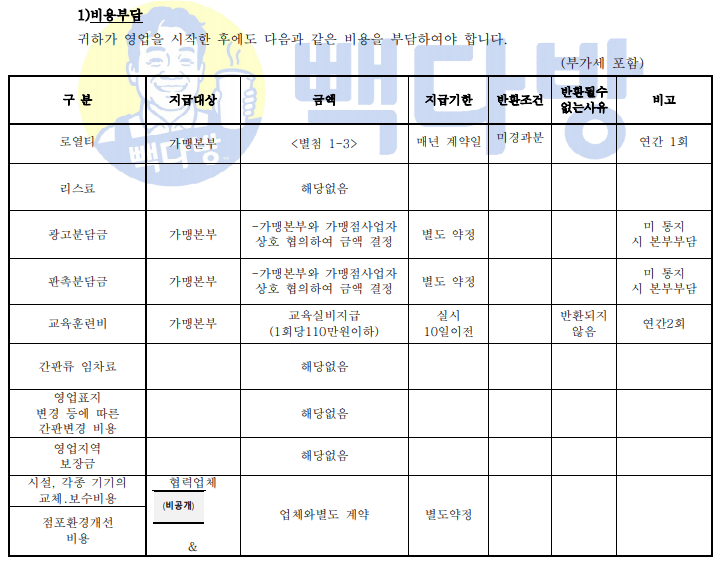 #빽다방가맹비용 #빽다방로열티 #빽다방예치가맹금
