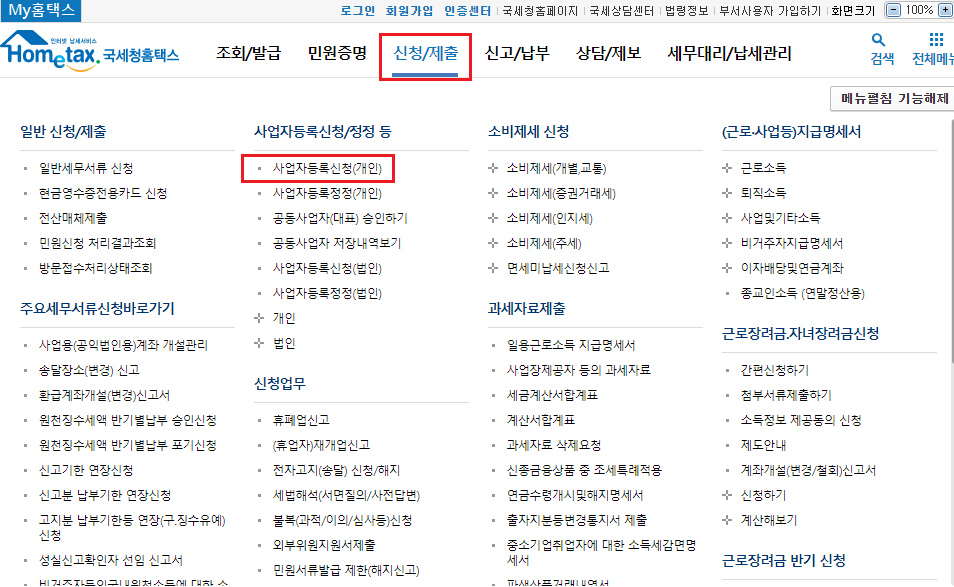 사업자등록신청(개인)